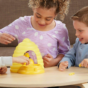 Kids can have so much fun bee-ing quick to trick the bee! Players take turns picking a piece of honeycomb from the honey hive but they have to bee-careful! The grumpy bee doesn't want to share and just might jump out to scare the honey right out of a player's hands! The last player to sneak a piece of honeycomb without getting caught by the bee wins the game. For two or more players.