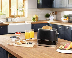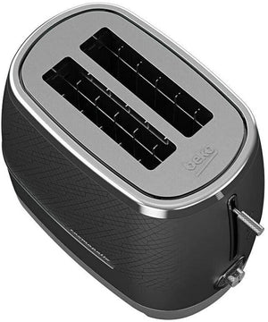 Beko Cosmopolis Toaster Retro Black Chrome Design, Extra Wide Slot 2-Slice Toaster, Includes Defrost, Reheat & Cancel Functions