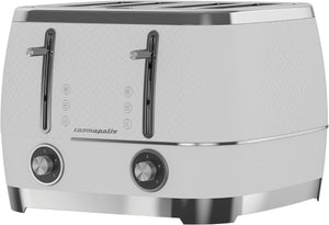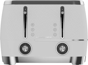 Beko Cosmopolis Toaster, Retro White Chrome Teal Design, Extra Wide Slot 4-Slice Toaster, Includes Defrost, Reheat And Cancel Functions
