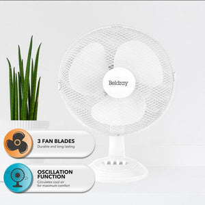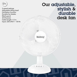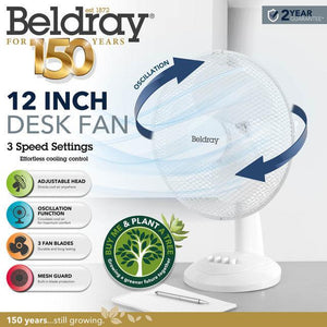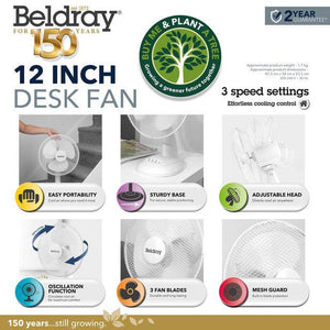 - The 12-inch desk fan by Beldray is great for keeping you cool at home or in the office, boasting easy portability from room to room.