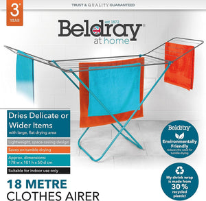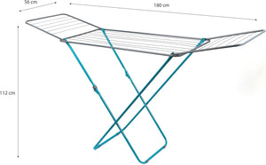 Beldray 18 Metre Airer – Winged Rack, Foldable for Easy Storage, Space-Saving Clothes Horse, Freestanding, Indoor Use Only, Naturally Dry Laundry, 178 x 101 x 50 cm, Turquoise
