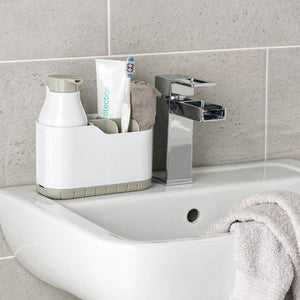 - The caddy is ideal for storing away your toothbrushes, toothpaste and razors and features a removable insert with 5 compartments.