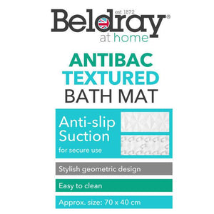 - This Beldray Anti-Bac bath mat is crafted with a textured surface and measures 68 x 39 cm to provide generous coverage in your bath.