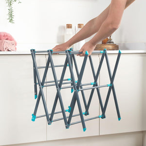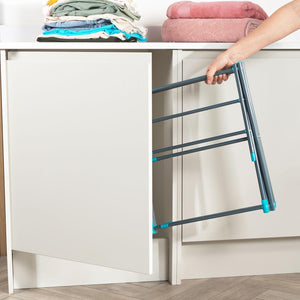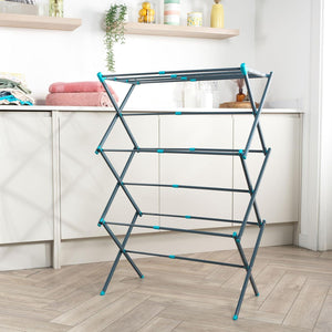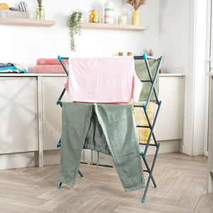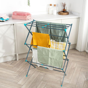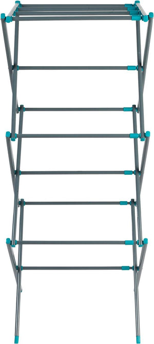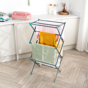 - Lightweight and compact, the airer has three tiers of space and features an adjustable drying space to accommodate varied loads.