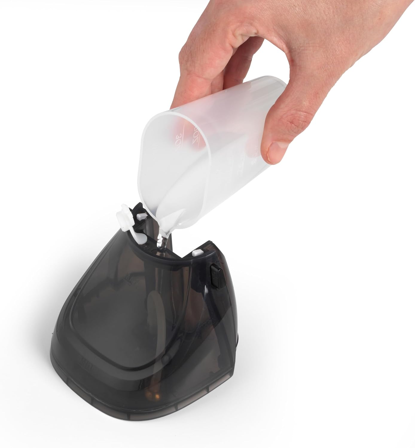 - The 180 ml water tank is fully removable for easy refilling, with a measuring jug included to prevent spills and drips.