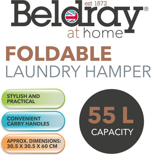 Beldray Large Collapsible Laundry Hamper – Freestanding Clothes Hamper, Laundry Bin For Dirty Clothes, Washing Basket With Side Carry Handles, 55L, Lightweight, 30.5 x 30.5 x 60cm