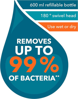 - By simply adding water to the 600 ml refillable bottle, you can effectively clean your floors with no need for any added chemicals.