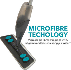 - Super absorbent and reusable, the microscopic fibres trap up to 99% of germs and bacteria using just water on wet and dry floors*