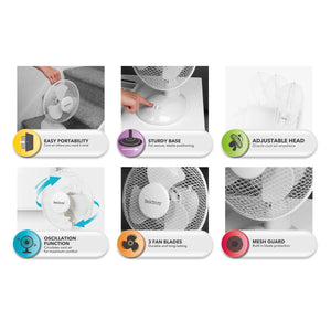 Beldray Oscillating 9 inch Desk Fan, White