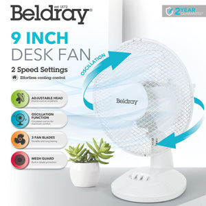 - For effortless cooling control at home or in the office, this 9” Beldray Desk Fan offers a superb way to beat the summer heat.