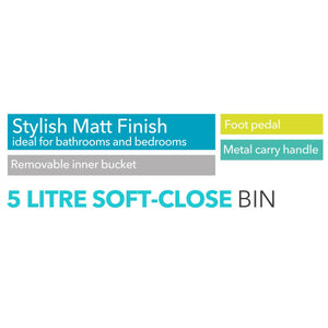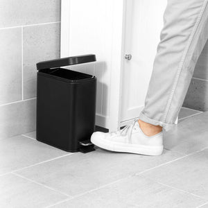 This sleek Beldray bathroom bin will provide an elegant and hygienic solution for your household waste disposal. This bin includes a hygienic foot pedal operation, a removable inner bucket with 5L capacity for easy emptying, a compact and slim rectangular design, and a stylish matte black finish to suit a modern home. This bin is also ideal for use in bedrooms, kitchens, and even offices. Its metal carry handle and soft-close lid mean that it can be moved around and operated quietly.