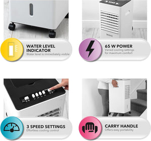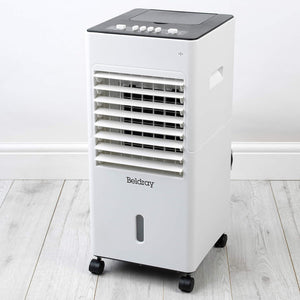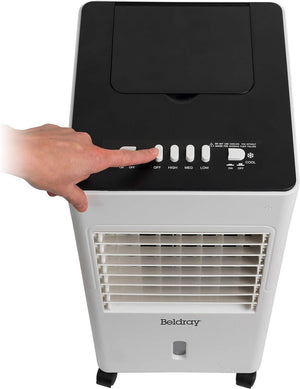 Beldray Portable Air Cooler - 6L Air Conditioner, Purifier, Dual Easy Fill Water Tank, Includes 2 Ice Packs For Cool Air Flow, 3 Fan Speed, Rotating Swing & Ioniser Function, 65W