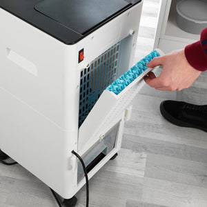 Inject some refreshing breeze into your bedroom, office or living room with this simple-to-use air cooler from Beldray. Ideal for stuffy summer days, it has a generous 6 L water tank with three convenient power settings and an automatic oscillation function so you can concentrate the cold air where you need it most. Built to last with a sleek white and grey finish, the 65 W cooler features a hard-wearing all-copper motor and heavy-duty ABS plastic housing for optimum durability.