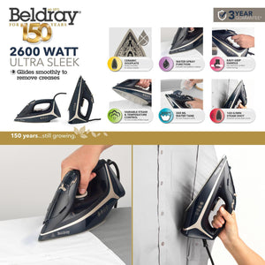 Beldray Steam Iron, 2500 W, 300ml Water Task, Ultra Sleek