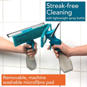 Beldray Window Squeegee – Machine Washable Microfibre Pad & Scraper Wiper For Mirrors/Tiles/Shower Screens/Glass Cleaning, 200 ml Spray Bottle, Window Washing, Multipurpose Cleaner Kit