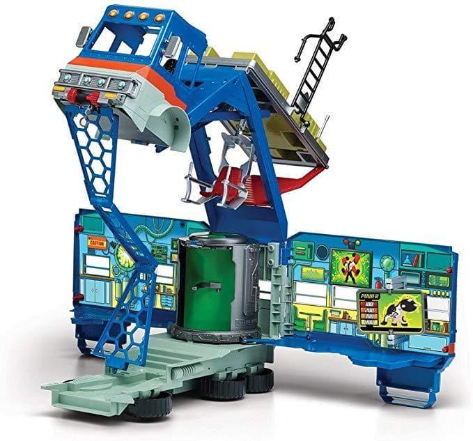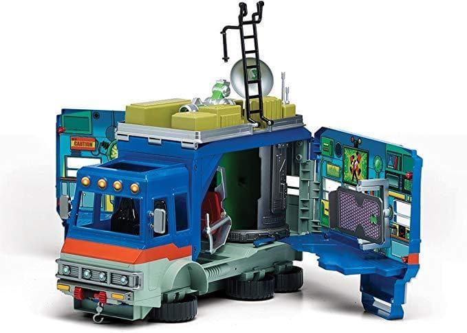 On an extended summer road trip Ben, his Grandpa Max and Cousin Gwen travel all over the country in their mobile home, affectionately called known as the Rust bucket, seeing the sights. While on holiday Ben Tennyson discovers a mysterious alien watch known as the Omnitrix and gains the amazing ability to transform into any one of ten different aliens heroes; each with their own power! Making his summer a blast, beating down all the alien villains on the way! Now you can re-create all you favourite scenes with your very own Rust Bucket playset as seen on Cartoon Network's animated series. The Rust Bucket is a 2-in-1 vehicle that transforms into a giant 3-level playset that stands over 2 feet (60cm) tall! The Rust bucket play set includes several features: 2-sided computer screen and alien exam table, Projectile shooting, launcher, Telescoping radar dish, Flip out panels, Control chair, Launches plasma blasts, Alien grabbing claw, Alien transformation chamber etc.