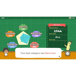 Take on a series of brain-bending activities that test your mental mettle in Big Brain Academy™: Brain vs. Brain for the Nintendo Switch™ system! Play a wide variety of activities, like memorizing a series of numbers, identifying an animal as it slowly comes into focus, or helping guide a train to its goal in fun, fast activities. Go brain-to-brain with friends and family in 4-player* matches to see who gets the highest score. Everyone can play together at varying difficulties, so a kid can hold their own against an adult in this battle of the brains!