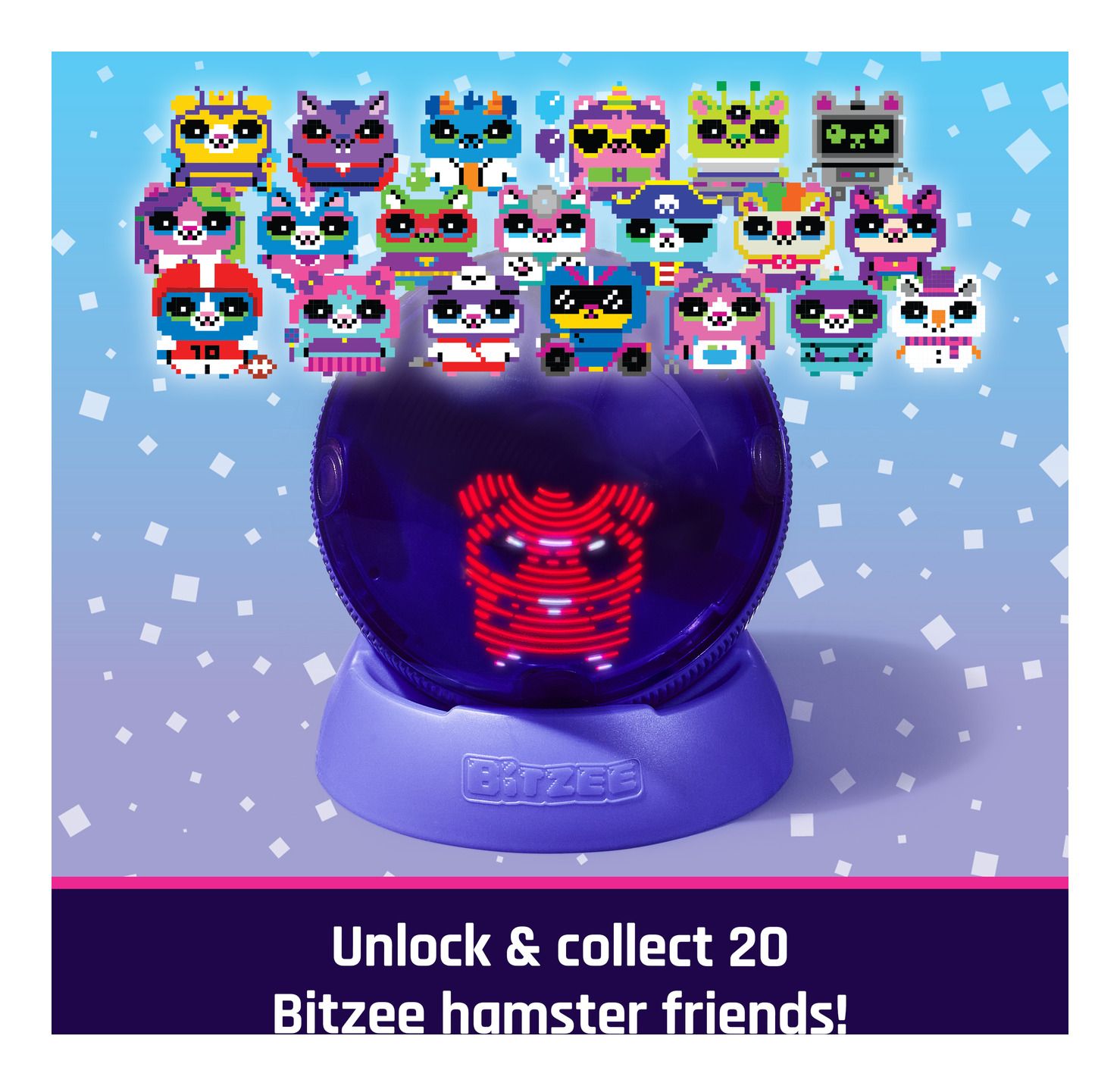 - Digital friends you can interact with: Bitzee Hamster Ball reacts to touch, movement & rolls with sounds & interactions. Find 20 friends to join your hero hamster on fun adventures. Includes 3 AA batteries