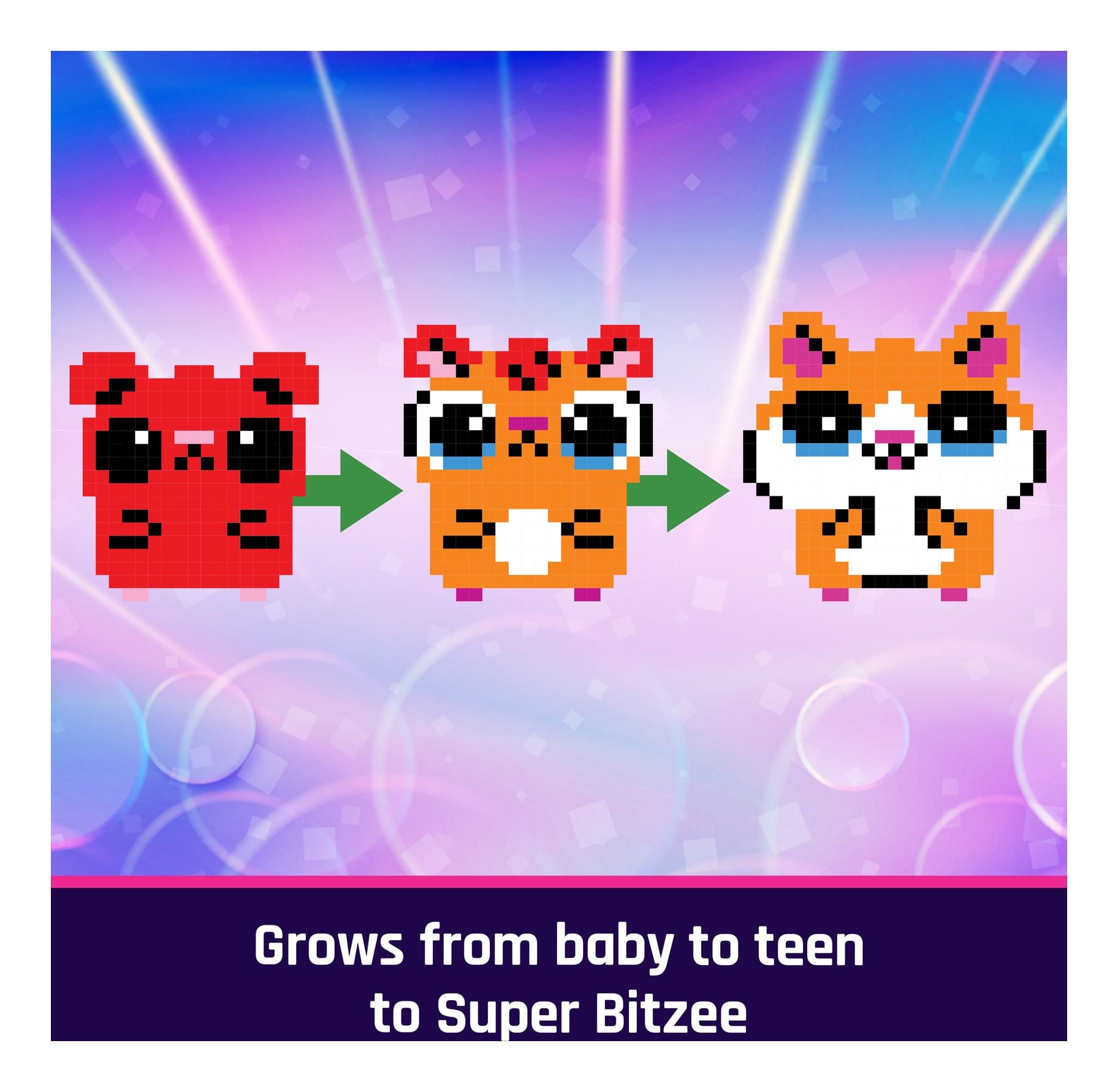 - Interact & care: Feed your hero Bitzee hamster treats, pet them, exercise on the hamster wheel, give them a bath & so much more. Grows from baby to teen to Super Bitzee