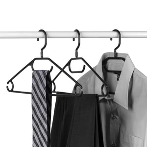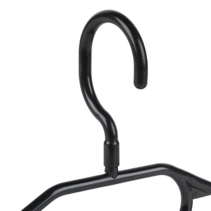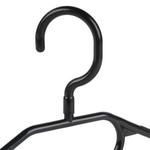 De-clutter your wardrobe and reorganise messy storage spaces with these Beldray multi-purpose plastic clothes hangers. Sturdy and durable, the hangers feature a slim design and extra hook for ties or scarves so you can save extra space in your wardrobe. Designed with curved corners, rotating hooks, ridged non-slip shoulders and trouser bars, they are ideal for hanging all types, makes and sizes of clothing. In a stylish neutral black colouring, the hangers would look perfect in any setting.