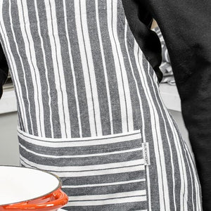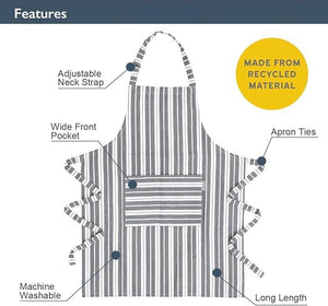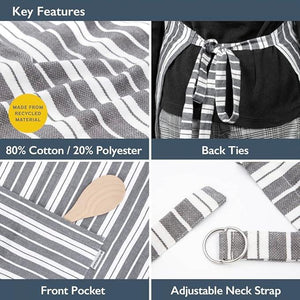 - STYLISH AND ADJUSTABLE – The apron comes in two stylish colours, grey or navy striped. It measures at 85 x 65cm and can be easily adjusted via neck strap to fit most sizes.