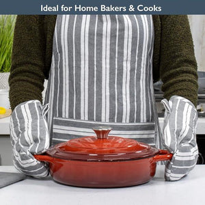 - CHEF APRON – This comfortable and durable apron is a home kitchen essential, ideal to wear during everyday cooking and baking to protect your clothing and skin from food and liquids.