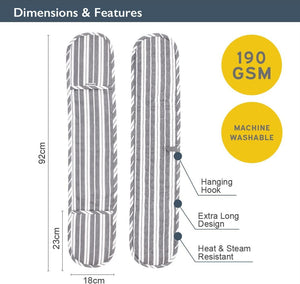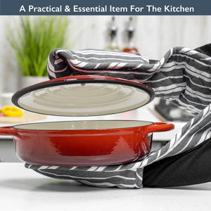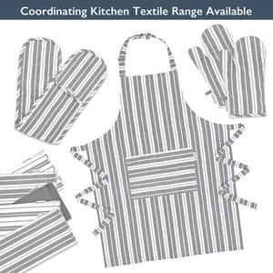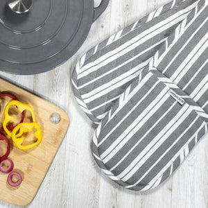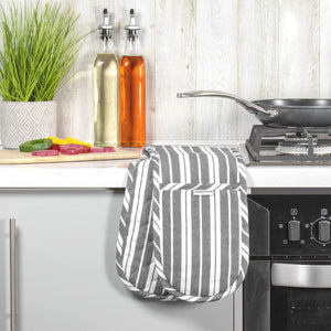 - STYLISH DESIGN – The oven mitt comes in two classic colours that will complement any kitchen, grey or navy. They measure 92 x 18cm and include a useful hanging loop so you can display them with ease.