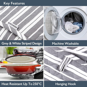 Blackmoor Double Oven Gloves/Heat Resistant Cotton Potholder Mitt for Home Cooking, BBQ, Grilling, Baking, Microwaving in Kitchen (Grey)