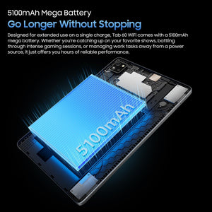 - 5100mAh Mega Battery, WiFi 6 Technology: Designed for extended use on a single charge, Tab 60 WiFi comes with a 5100mAh mega battery. Equipped with WiFi 6 technology which provides up to 40% faster connectivity than its predecessors, Tab 60 WiFi ensures smoother streaming, quicker downloads, and more reliable video calls while keeping you seamlessly connected, even in crowded areas.