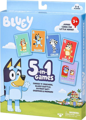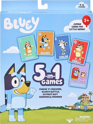- 5 In 1 Bluey Games Pack Includes:Cheese 'N" Crackers (Snap)Bluey'S Battle (Battle)Go Fruit Bat (Go Fish)Grannies (Old Maid)Memory