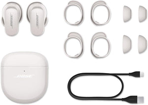 - INTRODUCING QUIETCOMFORT EARBUDS II: These new wireless, bluetooth, noise cancelling earbuds from Bose weren’t designed with a one-size-fits-all approach. These next-generation wireless earbuds are engineered to fit you. They intelligently personalise the noise cancellation and sound performance to uninterrupted, immersive listening wherever you are. To ensure all-day comfort and a secure fit, they come with three pairs of ear tips and three pairs of custom stability bands, so you can find the best fit for your ears. Own your uniqueness with sound and fit shaped to you.