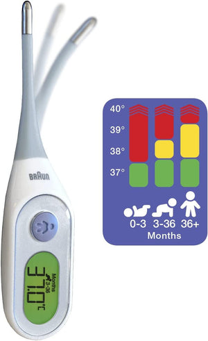 A handy digital thermometer featuring patented Age Precision® technology – age-adjustable fever guidance which takes the guesswork out of interpreting a child’s temperature.