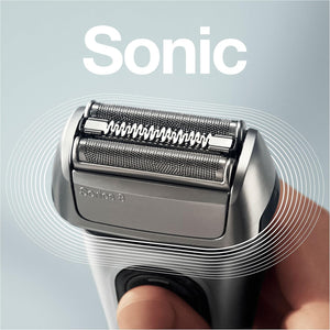 Braun's unique Sonic Technology uses 10,000 sonic vibrations to gently capture more hair in every stroke. The AutoSense Technology ensures a powerful shave on even the most dense beards.