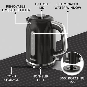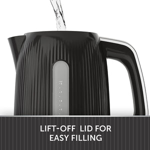 The large 1.7 Litre capacity boils up to 8 cups at once. A removable, washable limescale filter keeps water clean and clear.