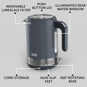 Not compromising on functionality, this impressive unit can handle the basics with ease; the concealed 3kW element provides a quick boil - perfect for that morning rush. While cord storage helps keep your worktop tidy, and the non-slip feet ensure the kettle remains stable whilst in use.