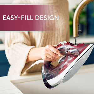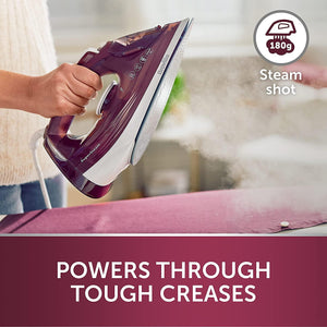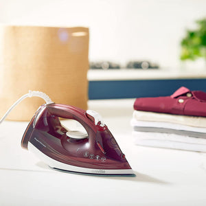 Crafted with sophisticated merlot red and silver finishes, this steam iron brings a touch of glamour to your chores, as well as 35g/min variable steam and a powerful 180g/min steam shot to tackle even the toughest creases.