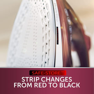 - Safe-Store heat indicator shows you when your iron is cool enough for storage and handling for extra safety