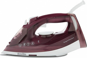 Breville SuperSteam Steam Iron | 2400W | Ceramic Soleplate | 180g Steam Shot | 300ml Water Tank | Red and Silver