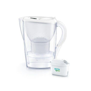 With BRITA every tap becomes a source of fresh tasting water that never runs out, the BRITA water filter jug for your daily life convenience providing fresh great tasting water for just a few pence per litre. The BRITA Marella features Innovative 4-stage filtration with natural activated carbon from coconut shells and ion exchanger pearls that filter trace impurities such as certain herbicides, pesticides and pharmaceuticals and reduces taste-impairing chlorine and metals like lead and copper. A digital indicator counts down the time of cartridge usage and flashes after 4 weeks to remind you to change and recycle the filter cartridge. The lid can be opened with one hand for refilling thanks to the comfortable flip-lid.
