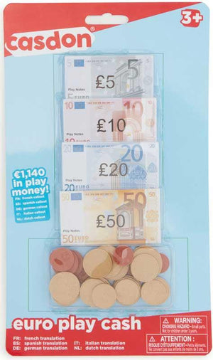 "Nothing inspires the imagination quite like playing shops. Whether ""working"" behind the till or doing the weekly food shop, there are countless ways to get a taste of the real world while having endless amounts of fun! This Play Cash set comes with a range of play notes and coins. This includes 80 play notes (£5, £10, £20 and £50) and 40 play coins (1p, 2p, 5p, 10p, 20p, 50p and £1). That's enough to get your little one's ""business"" off the ground or complete a successful shopping spree! The great thing about this Play Cash is that it also encourages learning through play, helping Little Shoppers to develop their counting and numeracy skills while having fun at the same time. There's no better way to give them a taste of the real world while creating a sense of responsibility. Whether teaming this Play Cash up with other items from the Little Shopper range or letting imagination take over, there are countless ways to play with this set. No two playtimes will ever be the same. No batteries required. Suitable for ages 3+. Also available in Euro."