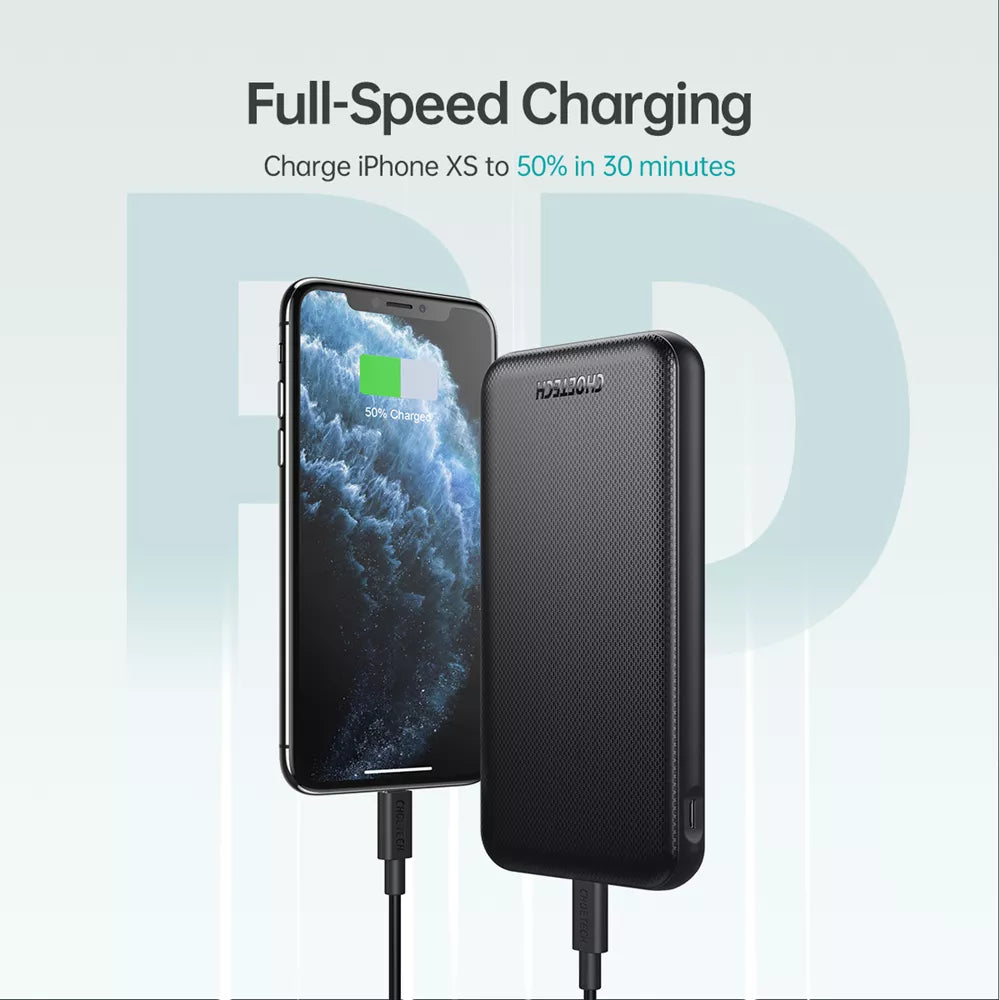 Choetech 10,000mAh 20W PD & QC3.0 LED Indicator Powerbank Black