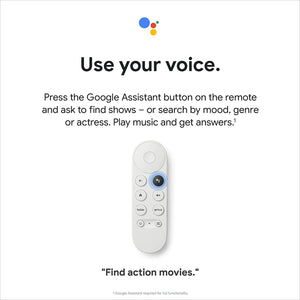- Press the Google Assistant button on the remote and ask to find shows – or search by mood, genre or actress. Play music and get answers.