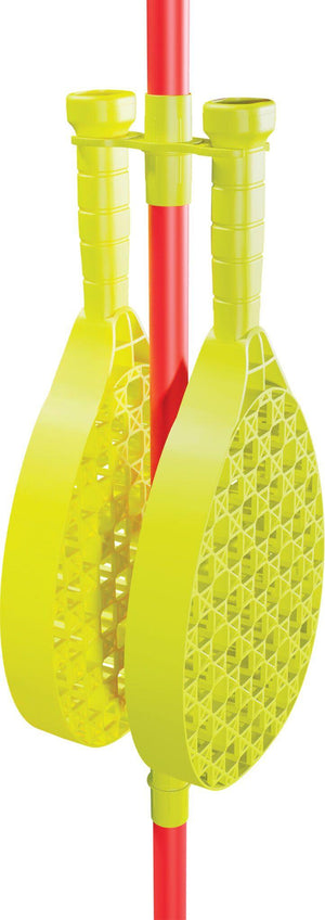 It includes a real tennis ball, 2 championship bats, height adjustable pole and a championship base (this cleverly converts into a handy carry case).