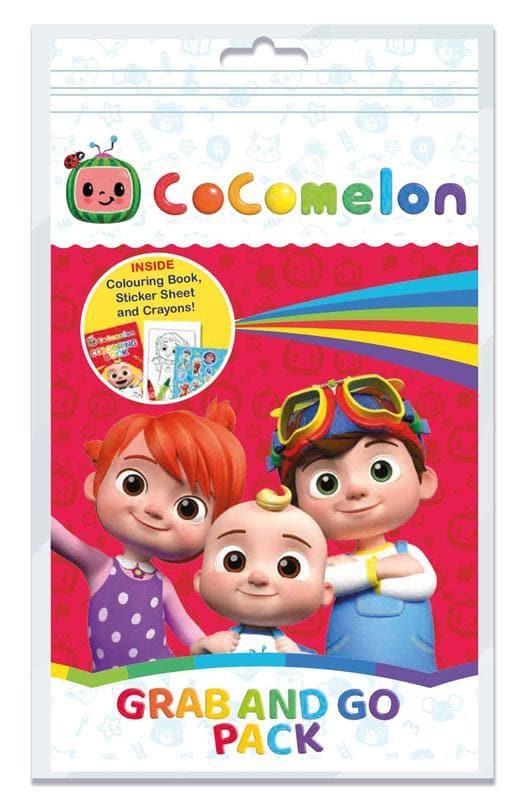 - The craft pack includes a Cocomelon themed colouring book, sticker sheet and crayons.