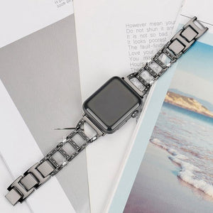 Colorful Diamond Stainless Steel Watchband for Apple Watch Ultra 2, Ultra 1, Series 9, 8, 7, 6, SE, 49mm, 45mm, 44mm, 42mm (Black)