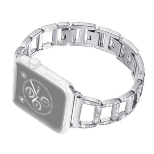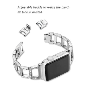 Colorful Diamond Stainless Steel Watchband for Apple Watch Ultra 2, Ultra 1, Series 9, 8, 7, 6, SE, 49mm, 45mm, 44mm, 42mm (Silver)