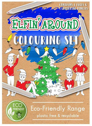 This eco-friendly mini colouring set includes 6 Elfin Around colouring sheets and 4 mini colouring pencils in Blue, Green, Red and Yellow. The colouring set contains no plastic content and is fully recyclable.