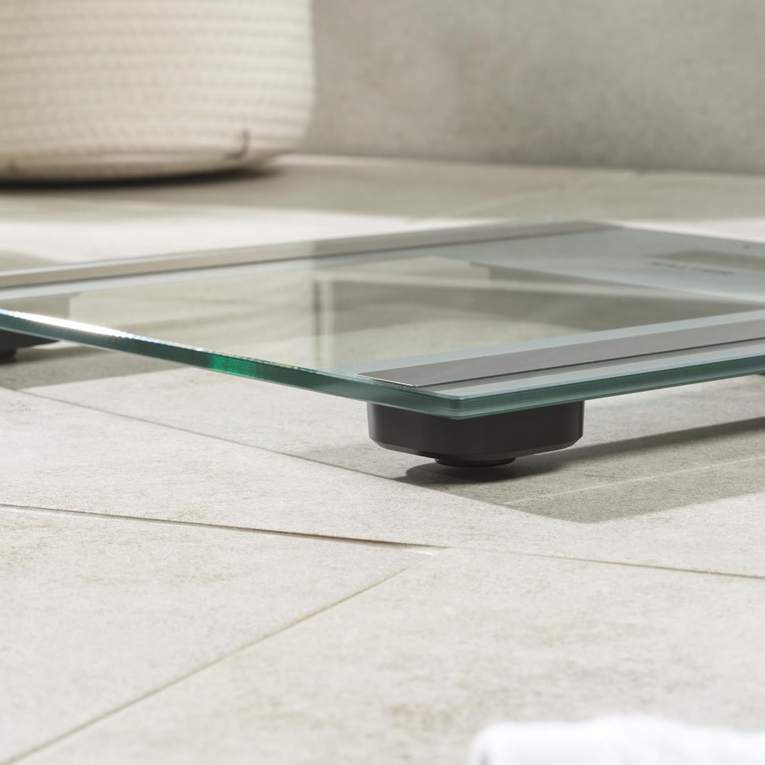 - COMPACT DESIGN: This electronic bathroom scale has a slim design so you can tuck it away after use for tidy storage. Worried about using it on uneven surfaces? Don’t be! This digital scale comes with carpet feet, ensuring extra stability.