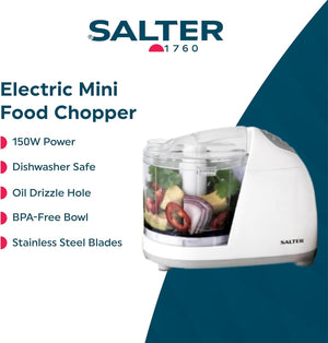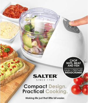 - Make food preparation simple with this wonderful Salter Mini Chopper designed to chop ingredients with just the touch of a button.