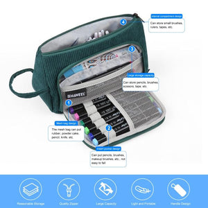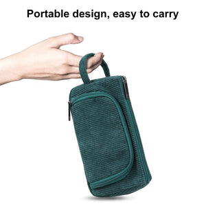 Corduroy Triangular Pen Case Cover Makeup Pouch Travel Cosmetic Organizer Bag (Emerald)